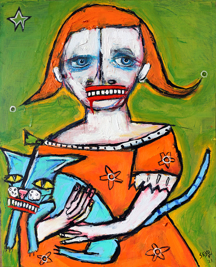 "Girl, with cat" oil on canvasboard 16" x 20" *SOLD email sesow@sesow.com to reserve/ask about purchasing. please include url and description. |