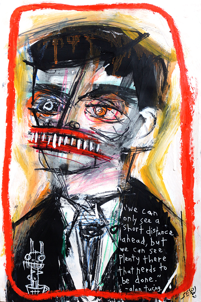 "Turing" acrylic/mix on paper 12" x 18" *SOLD email sesow@sesow.com to reserve/ask about purchasing. please include url and description. |