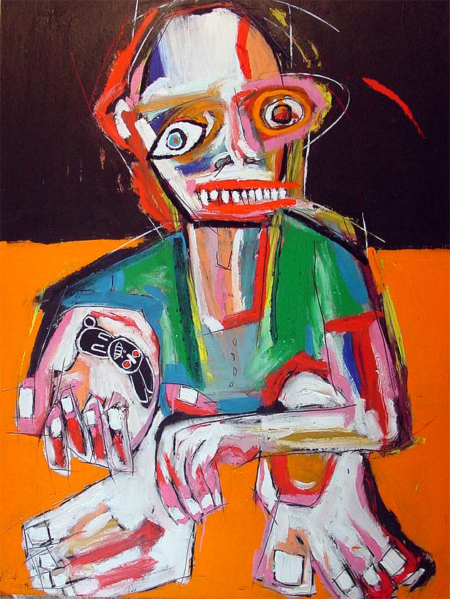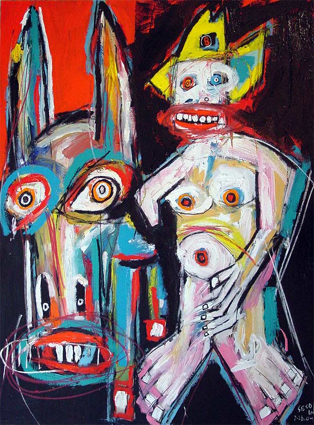 "Donkey Boy Jack" 30" x 40" oil/acrylic on chipboard "31 Days in July" 2004 project (July 25) $400 |
