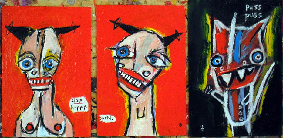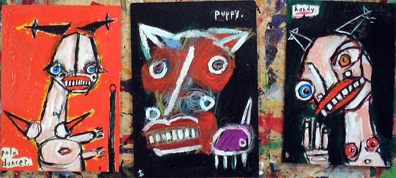 small original paintings approx 4" x 6" acrylic/mixed on matboard *SOLD |