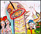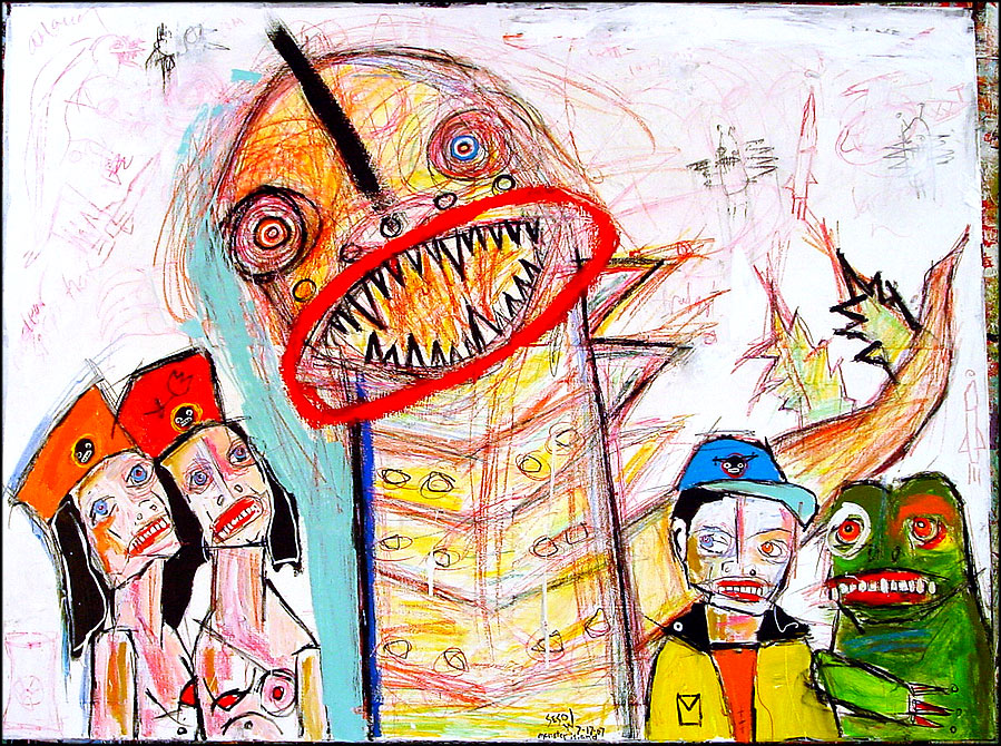 "Monster Island" 30" x 40" acrylic/mixed on stretched canvas $800 "31 Days in July Series" (July 17, 2007) (world's largest nuclear reactor in japan spills 1,200 liters of radioactive water and 100 nuclear waste drums spill after earthquake, post didn't cover the story) CLICK HERE to for wash. post cover image |