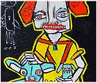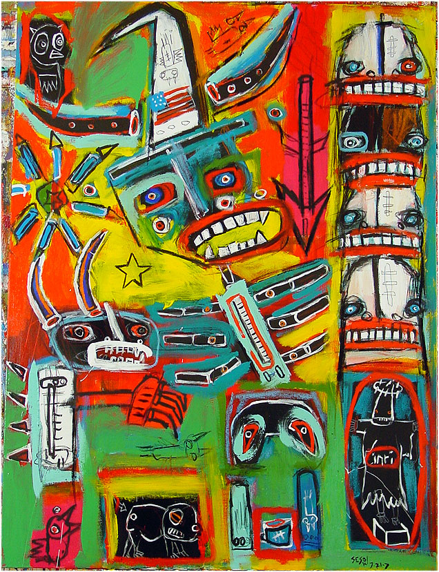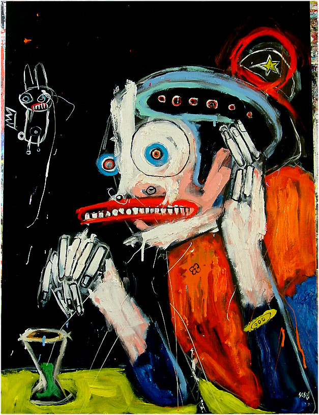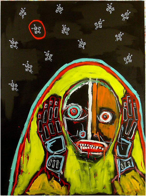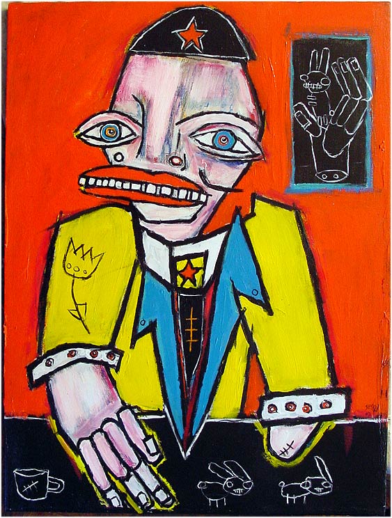 "Interrogator" 30" x 40" acrylic/mixed on stretched canvas *SOLD "31 Days in July Series" (July 21, 2007) CLICK HERE to for wash. post cover image |