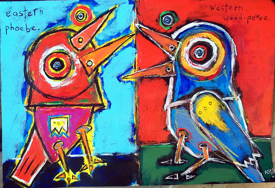 "Eastern Phoebe and Western Wood-Pewee" mix on watercolor paper 22" x 15" email sesow@sesow.com to reserve/ask about purchasing. please include url and description. |