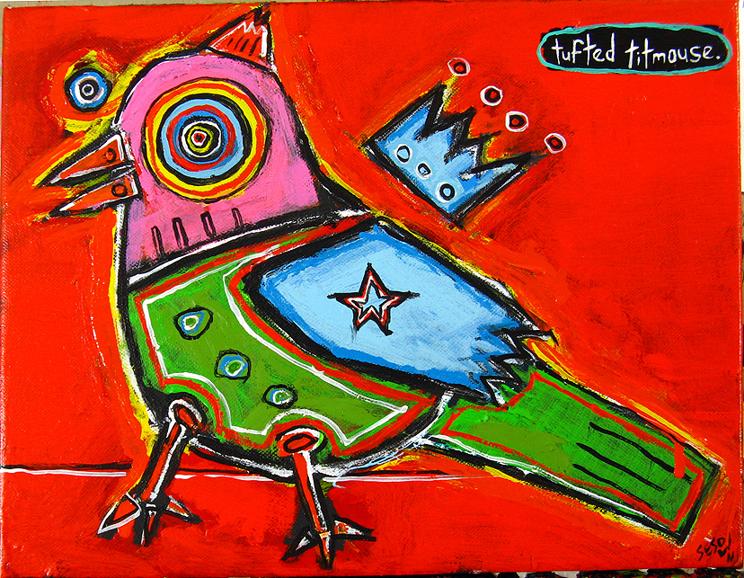 "Tufted Titmouse" mix on stretched canvas 11" x 14" *SOLD email sesow@sesow.com to reserve/ask about purchasing. please include url and description. |