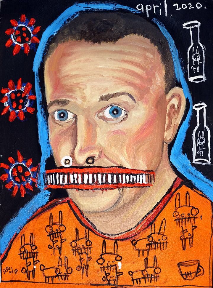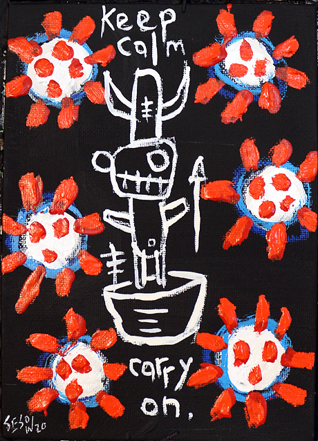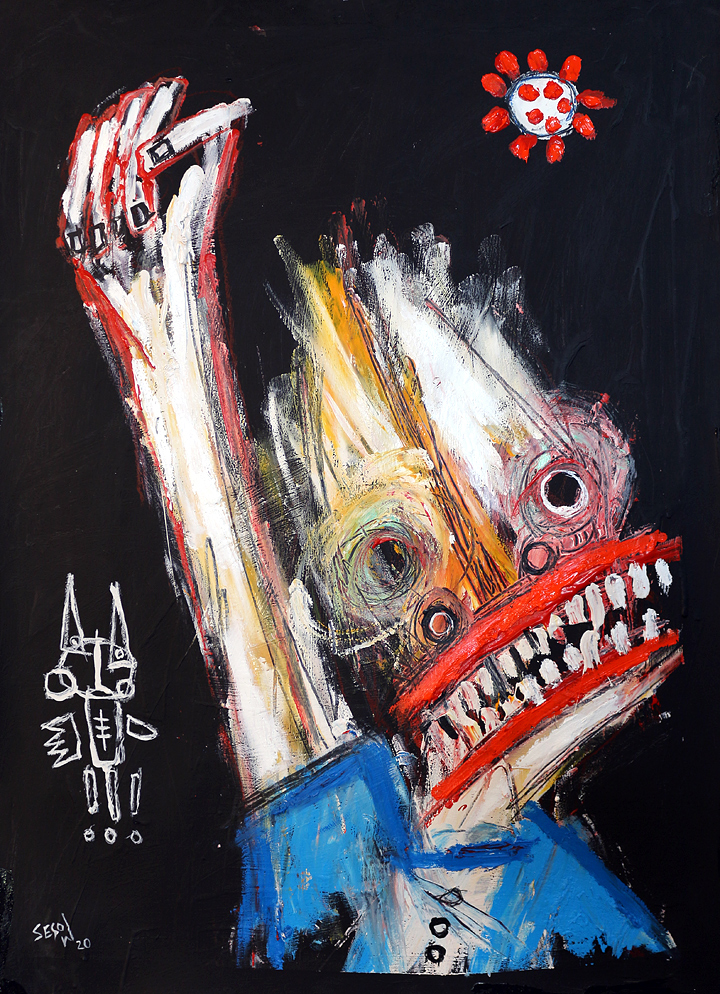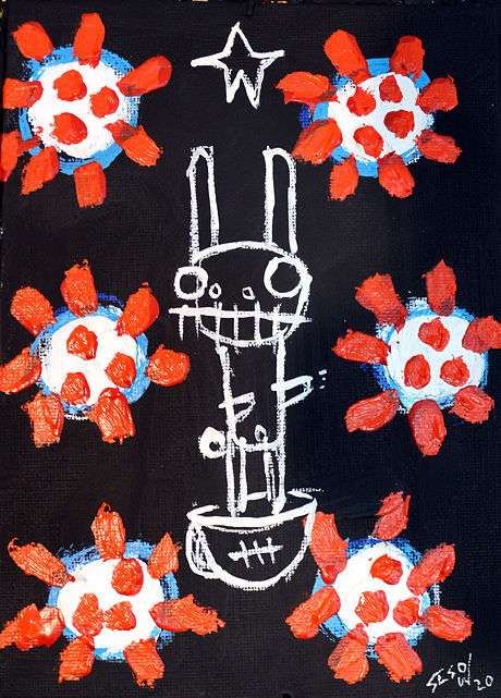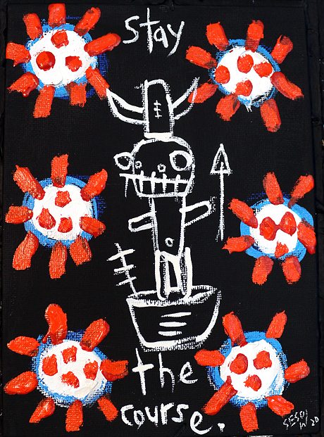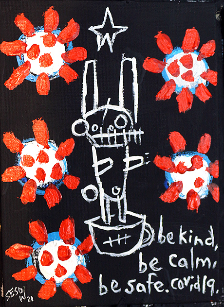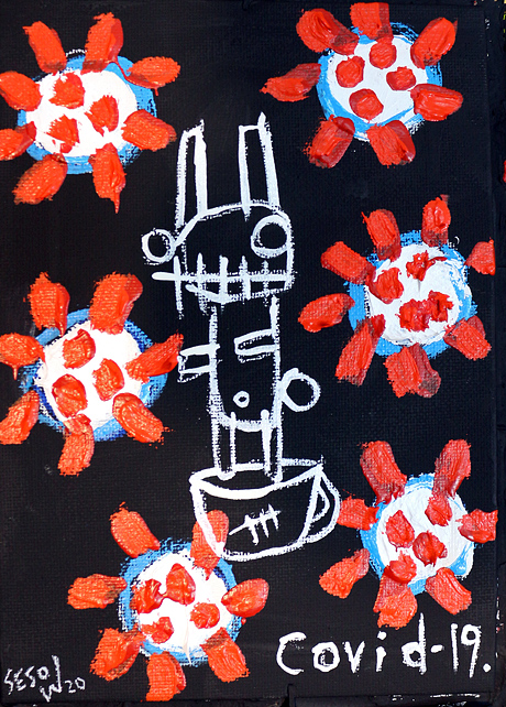 "COVID-19 " acrylic/mix on canvasboard 5" x 7" *SOLD email sesow@sesow.com to reserve/ask about purchasing. please include url and description. |