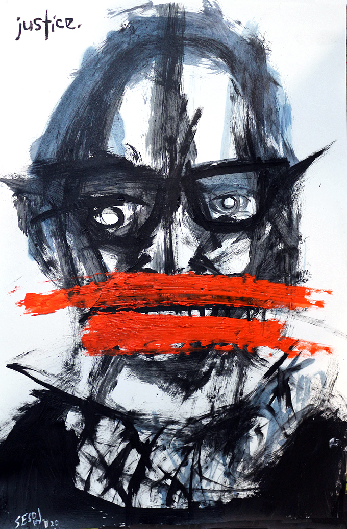 "Justice" acrylic/oil on paper 12" x 18" *SOLD email sesow@sesow.com to reserve/ask about purchasing. please include url and description. |