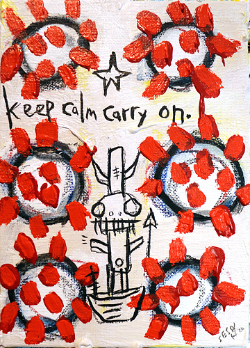 "(continue to) Keep Calm, Carry on" acrylic/mix on canvasboard 5" x 7" *SOLD email sesow@sesow.com to reserve/ask about purchasing. please include url and description. |