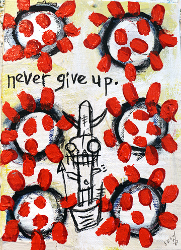 "Never Give Up" acrylic/mix on canvasboard 5" x 7" *SOLD email sesow@sesow.com to reserve/ask about purchasing. please include url and description. |