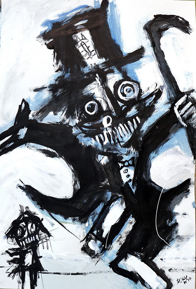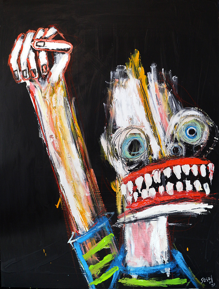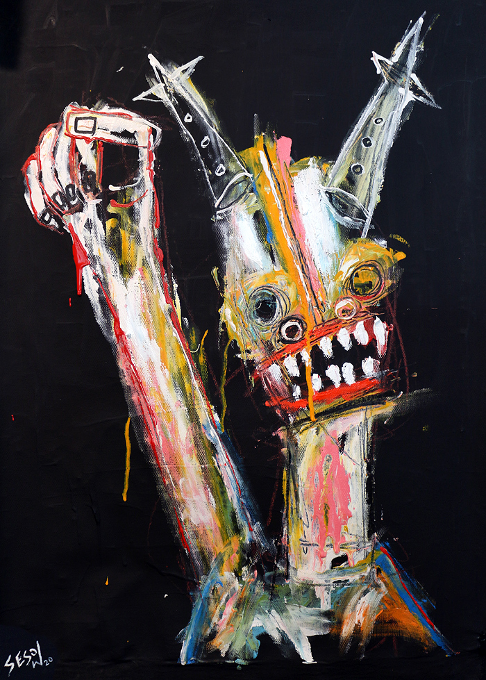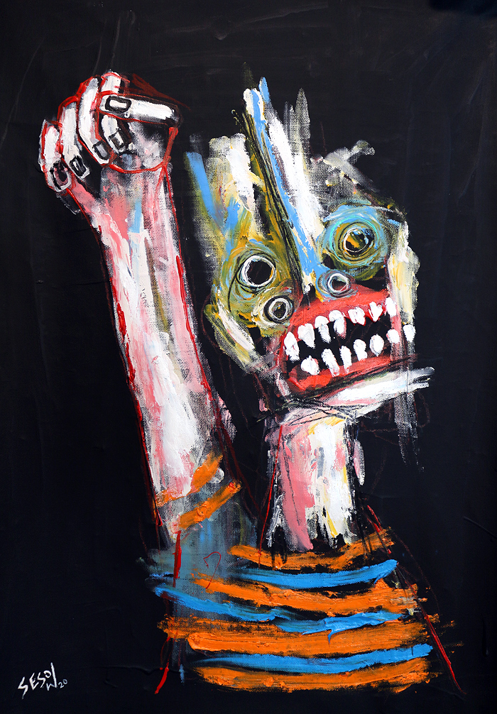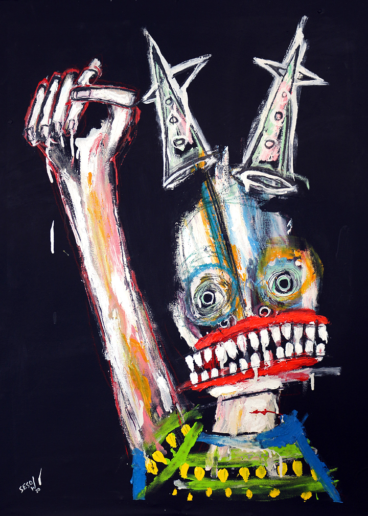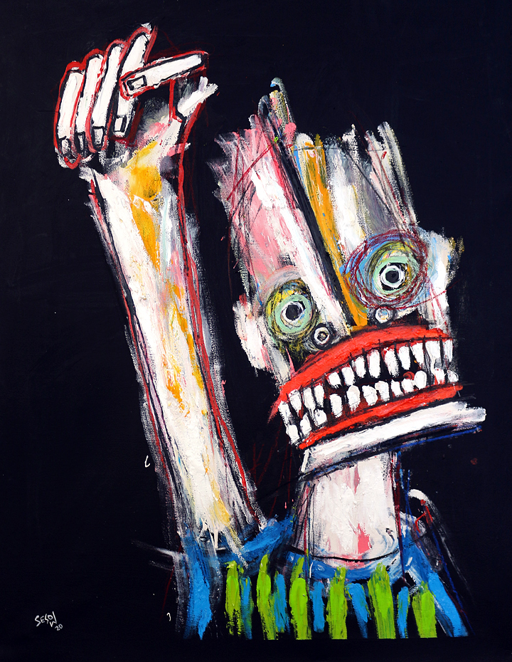 "Protester" acrylic/oil on unstretched canvas 21" x 28" (approx. 1.5" extra black border around) *SOLD email sesow@sesow.com to reserve/ask about purchasing. please include url and description. |