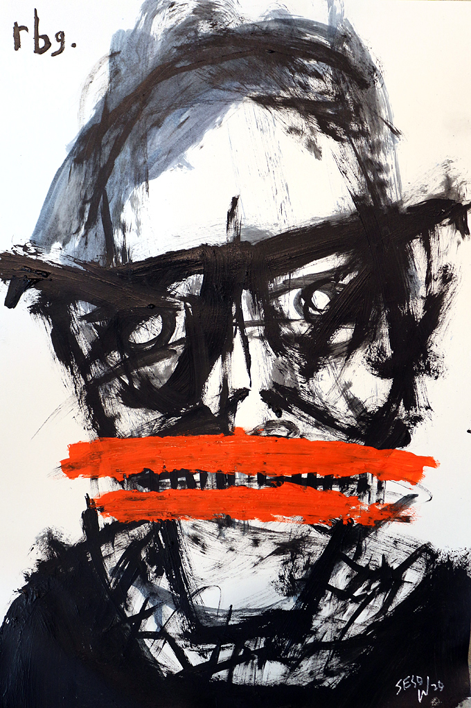 "Ruth Bader Ginsburg" acrylic/oil on paper 12" x 18" *SOLD email sesow@sesow.com to reserve/ask about purchasing. please include url and description. |