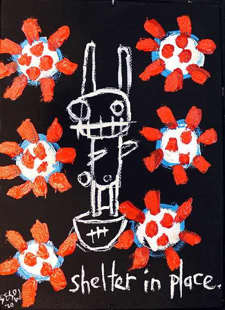 "Shelter in Place " acrylic/mix on canvasboard 5" x 7" *SOLD email sesow@sesow.com to reserve/ask about purchasing. please include url and description. |