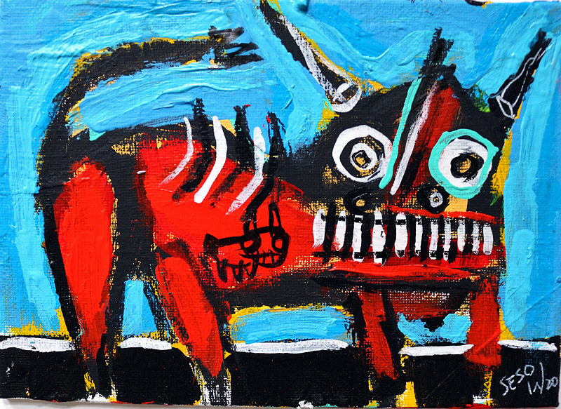 "Bull (3)" acrylic on canvasboard 5" x 7" *SOLD email sesow@sesow.com to reserve/ask about purchasing. please include url and description. |