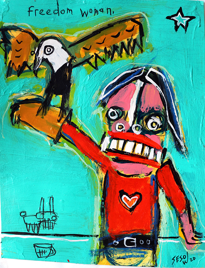 "Freedom Woman" acrylic/mix on bristol paper 11" x 14" *SOLD email sesow@sesow.com to reserve/ask about purchasing. please include url and description. |