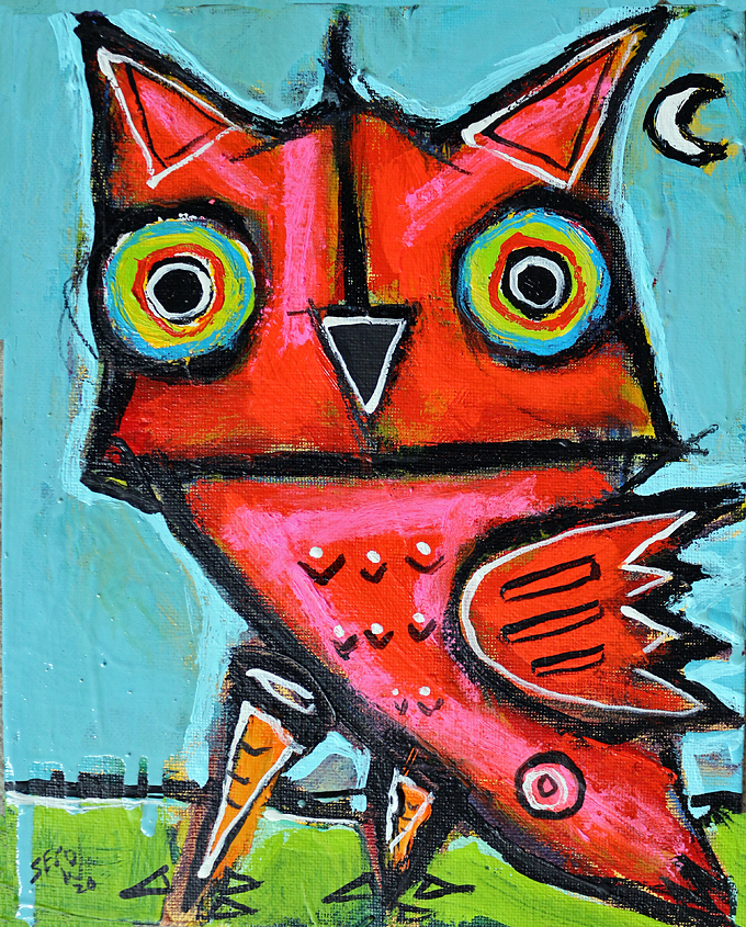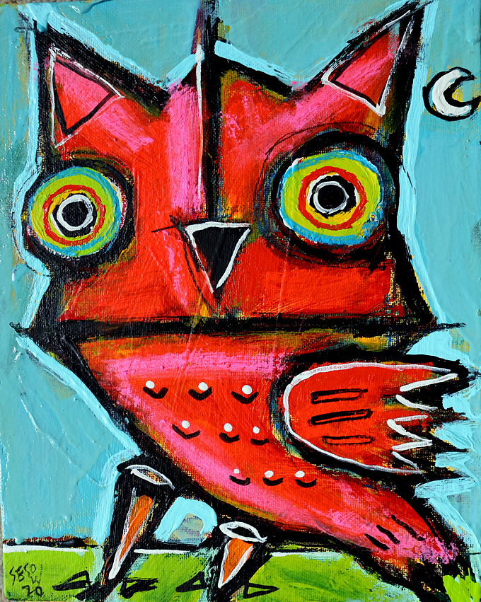"Small Red Owl" acrylic/oil on canvasboard 8" x 10" *SOLD email sesow@sesow.com to reserve/ask about purchasing. please include url and description. |