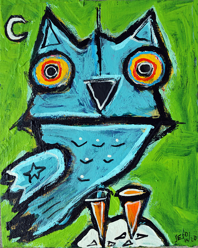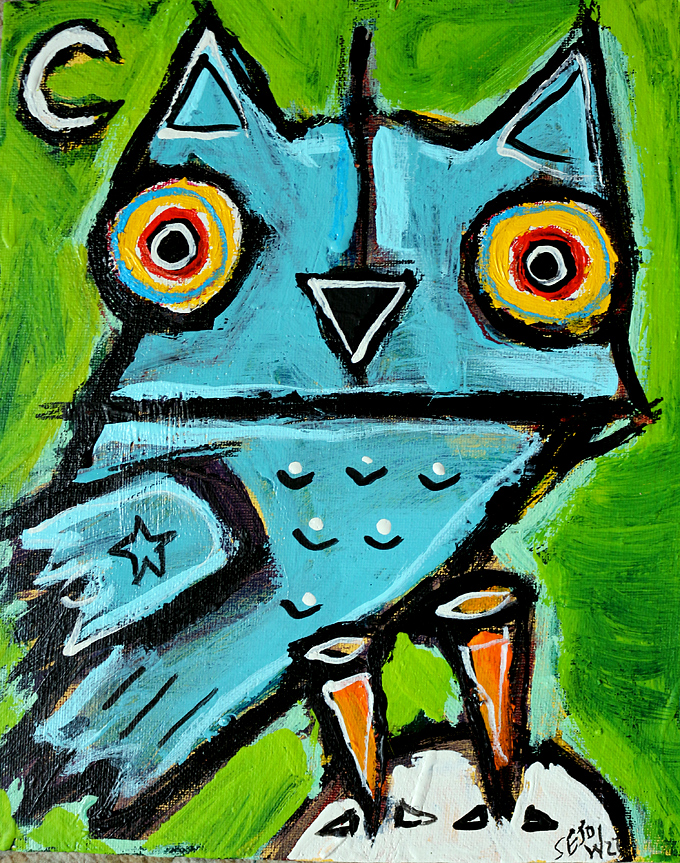 "Small Blue Owl" acrylic/oil on canvasboard 8" x 10" *SOLD email sesow@sesow.com to reserve/ask about purchasing. please include url and description. |