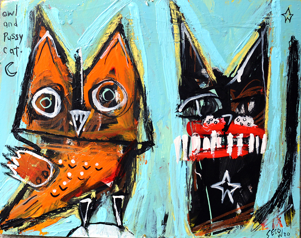 "Owl and Pussy Cat" acrylic/oil on matboard 11" x 14" *SOLD email sesow@sesow.com to reserve/ask about purchasing. please include url and description. |