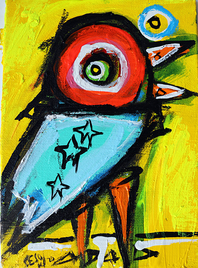 "Three Star Bird" acrylic/oil on canvasboard 5" x 7" *SOLD email sesow@sesow.com to reserve/ask about purchasing. please include url and description. |