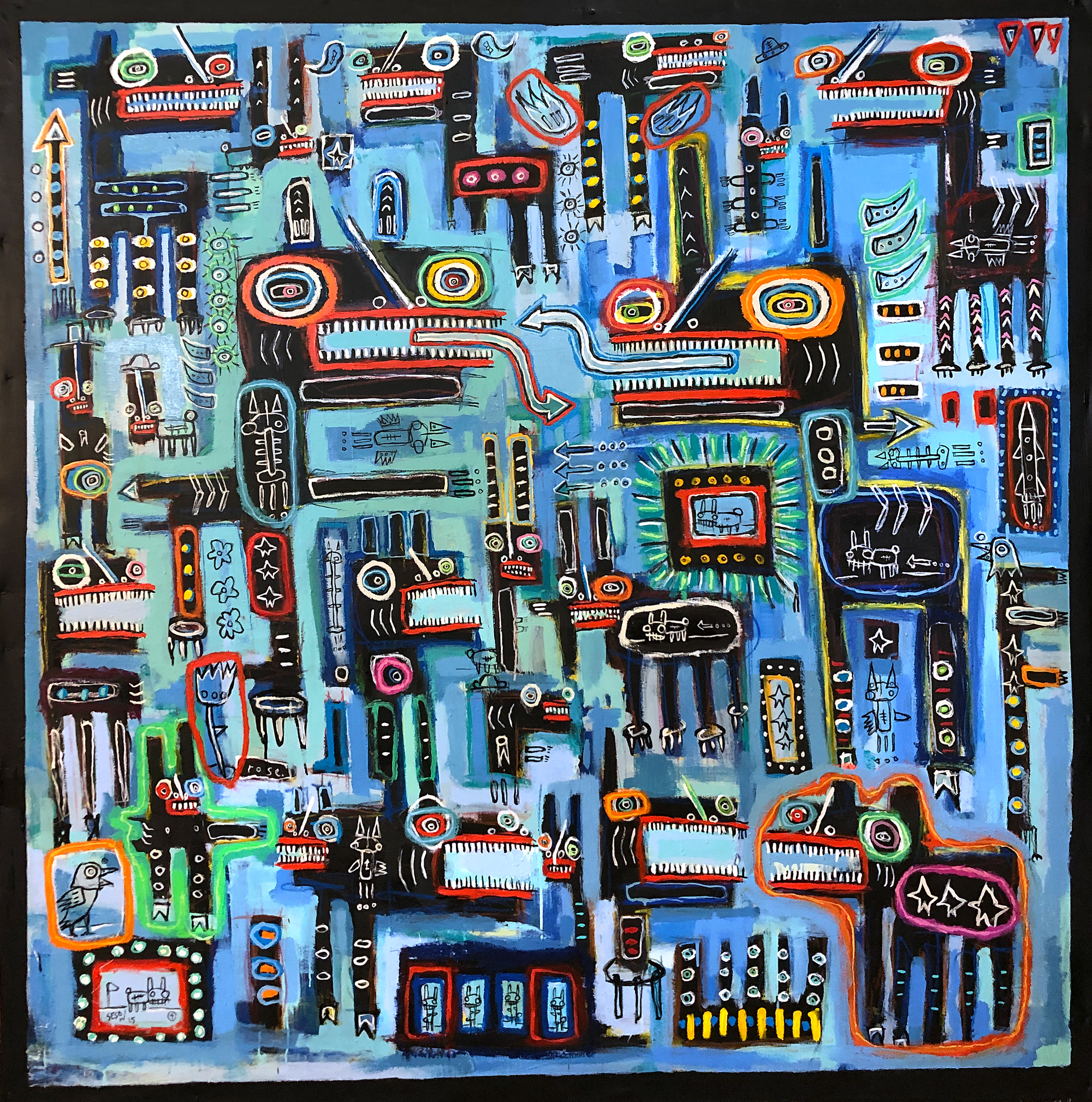 "Blueprint" oil/acrylic/mix on unstretched canvas 67" x 67" (painting 63" x 63") *SOLD email sesow@sesow.com to reserve/purchase. |