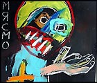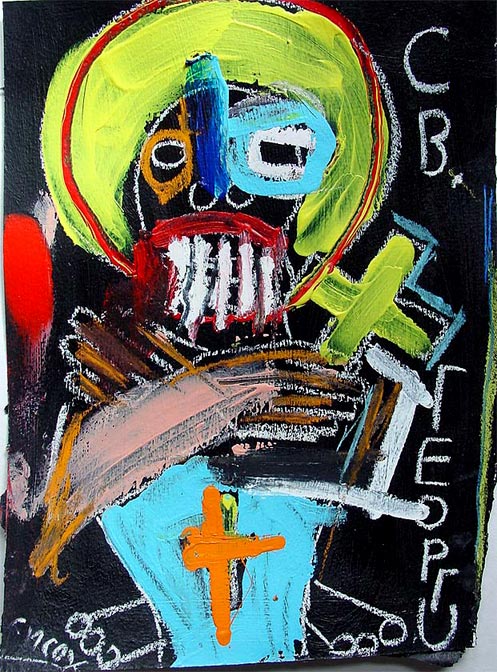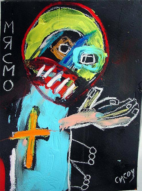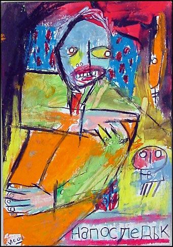 "Saint Georgi", 2002 completed in Sofia, Bulgaria while in the 'GeekCorps' 9.5" x 10.5" acrylic/mixed on paper (art supplies acquired in bulgaria) $120 taken out of circulation in 2004, now available june 2007 |