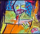 "Like-Minded", 2002 completed in Sofia, Bulgaria while in the 'GeekCorps' approx 4" x 6" acrylic/mixed on matboard (art supplies acquired in bulgaria) *SOLD |