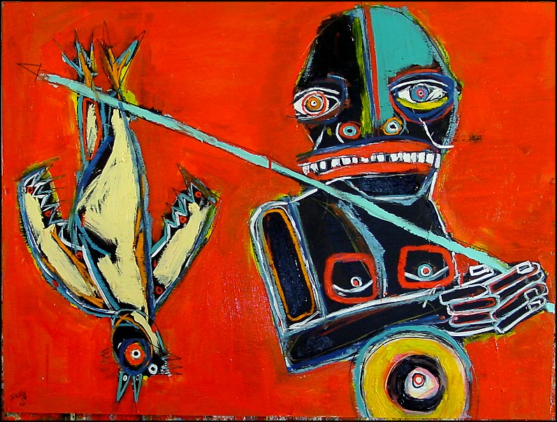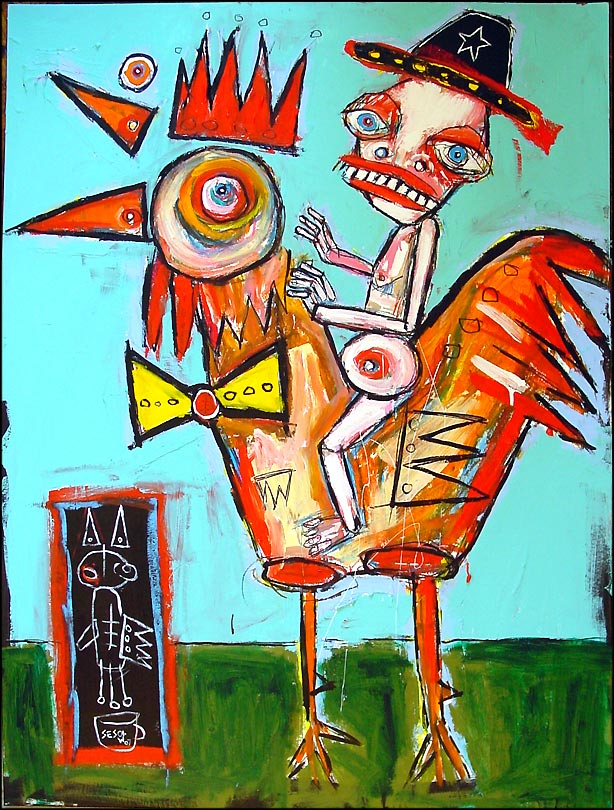 "Chicken on a Stick" 30" x 40" oil on chipboard *SOLD |