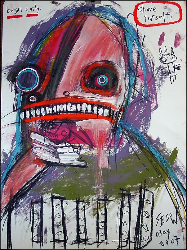 "shave" 22" x 30" oil/mixed on watercolor paper $140 |