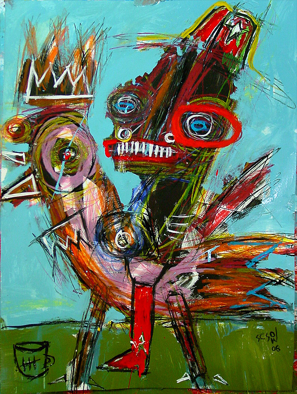 "Question (with chicken)" 18" x 24" oil/mixed on bristol paper *SOLD CLICK for full view |