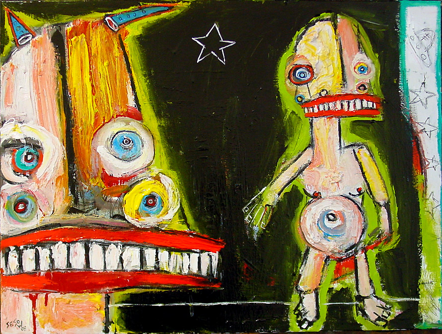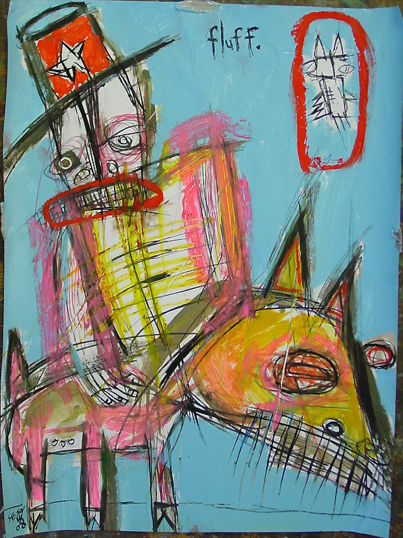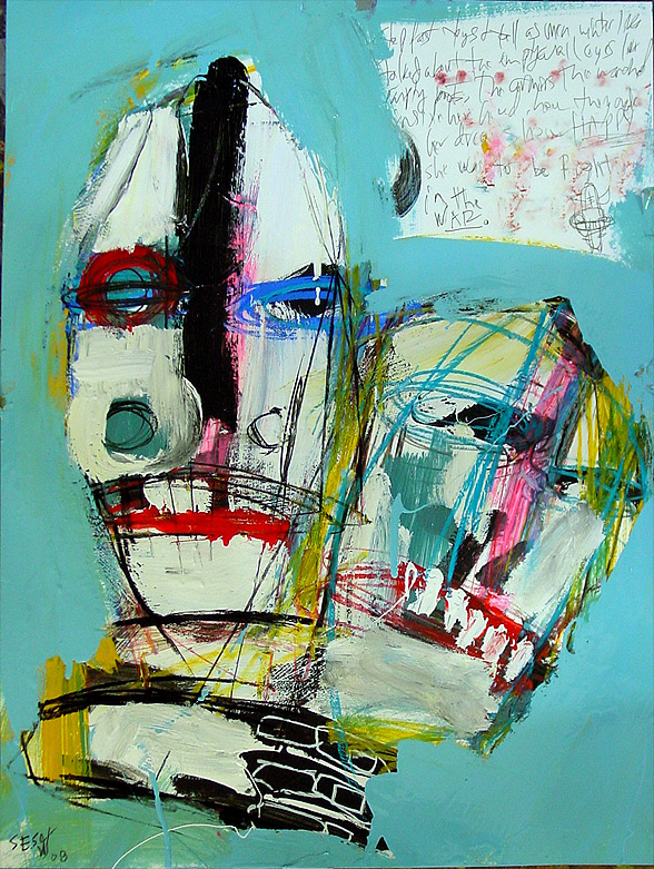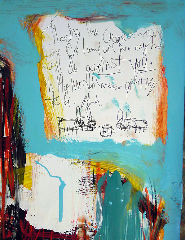 "Same Old Song" (2004) 30" x 40" mixed on chipboard ("31 Days in July" July 27) $600 |