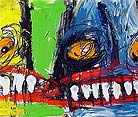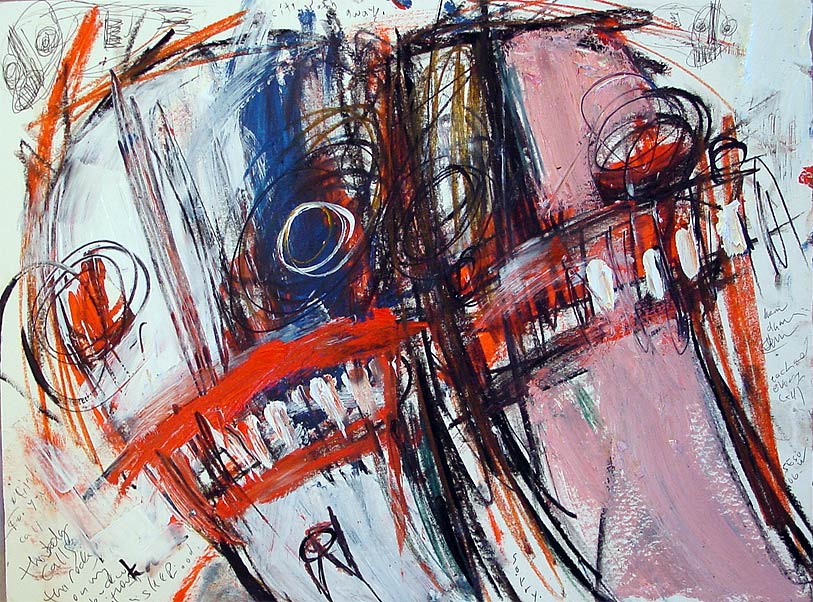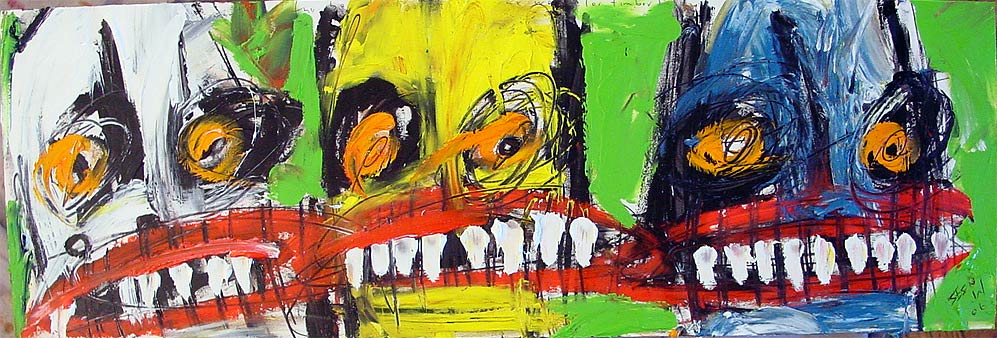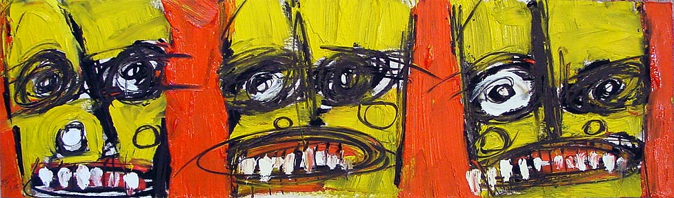 "Rotating Heads" approx. 19" x 6" oil/mixed on matboard *SOLD click here to reserve/inquire |