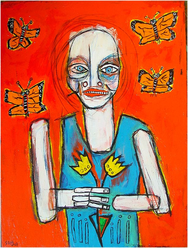 "Curator (with migrating Monarch butterflies)" 18" x 24" acrylic on stretched canvas *SOLD |