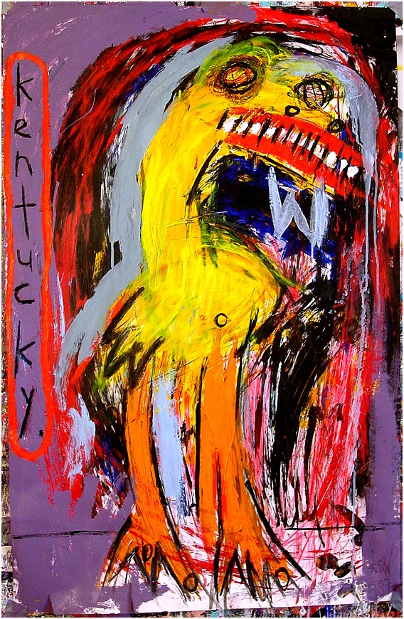 "Derby Bird" 26" x 40" oil/ mixed on paper *SOLD (2 tiny rips at bottom of painting from aggressive painting) |