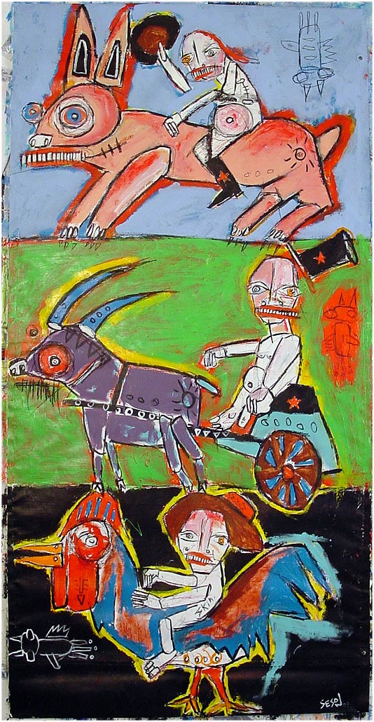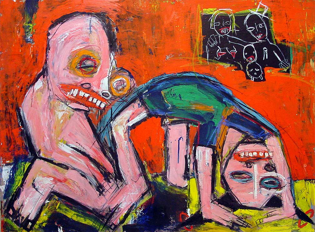 "Best Friends" (2003) approx 30" x 40" oil/mixed on chipboard *SOLD |