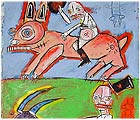 "Sheep Leaping (over large head)" 18" x 24" acrylic/oil, etc on bristol paper *SOLD |