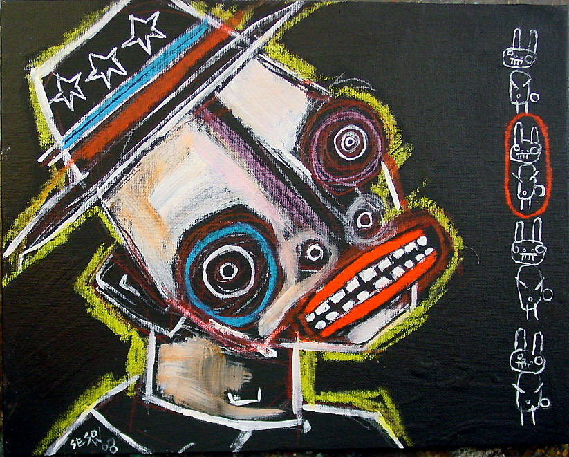 "Bunny Selector" 11" x 14" acrylic on canvasboard $160 |