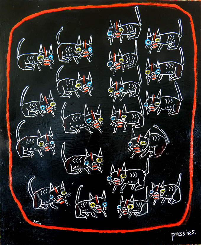 "A Bunch of Pussies" acrylic on stretched canvas 20" x 24" *SOLD email sesow@sesow.com to reserve/ask about purchasing. please include url and description. |
