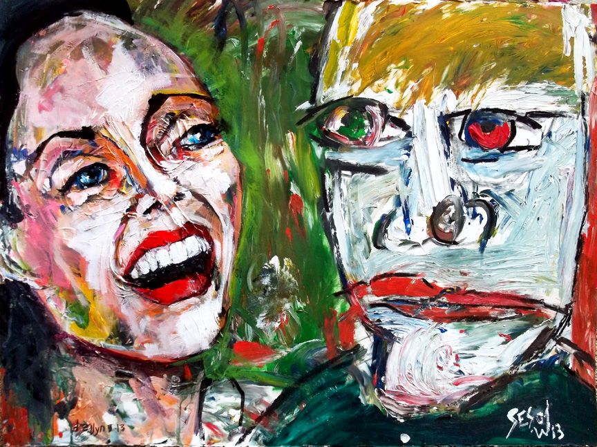 "Love Birds" (from the 2013 "Defiled" series, a collaborative group of paintings with Dana Ellyn mix on stretched canvas 30" x 40" $1000 email sesow@sesow.com to reserve/ask about purchasing. please include url and description. |