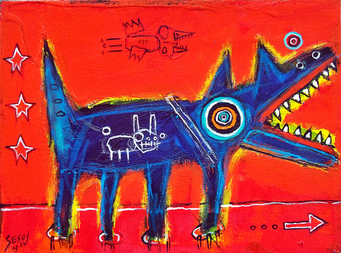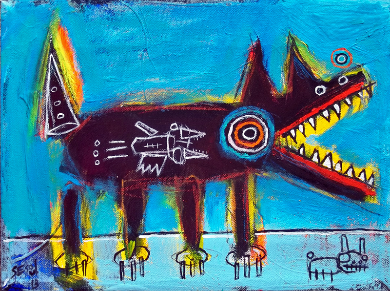 "Mongrel" acrylic/mix on stretched canvas 9" x 12" *SOLD email sesow@sesow.com to reserve/ask about purchasing. please include url and description. |