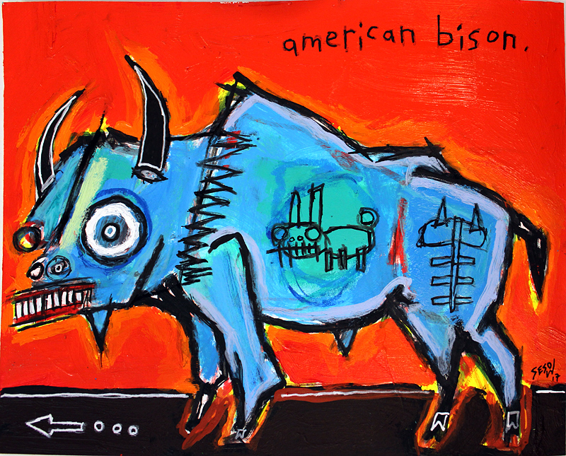 "American Bison" acrylic on archival paper 8" x 10" *SOLD email sesow@sesow.com to reserve/ask about purchasing. please include url and description. |