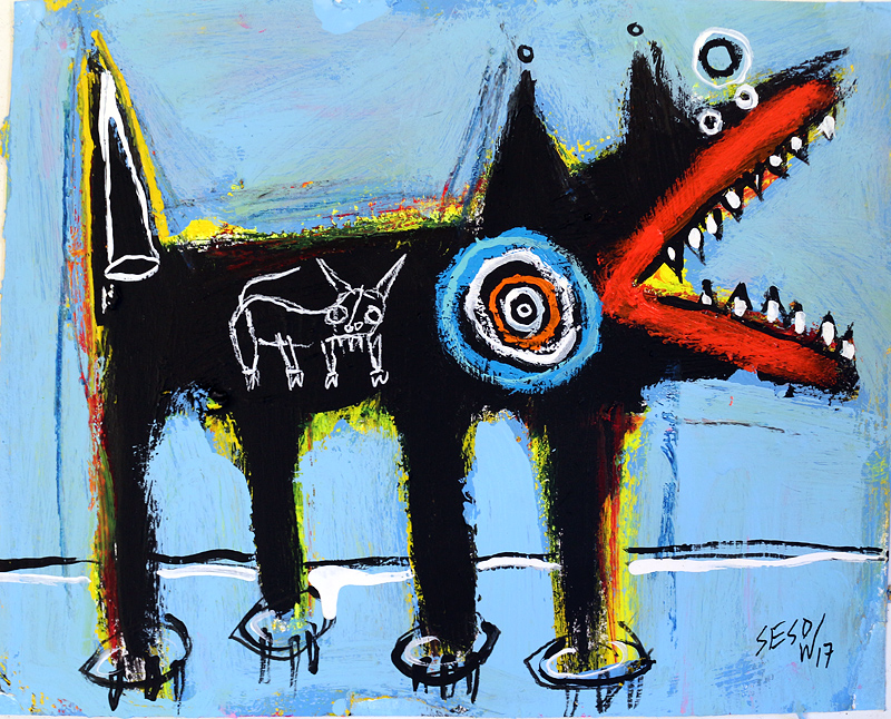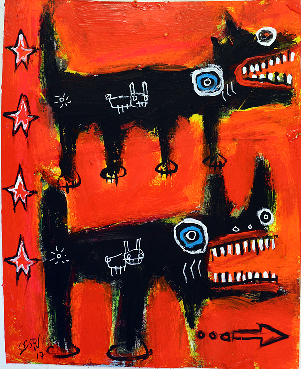 "Dog Pack" acrylic on archival paper 8" x 10" *SOLD email sesow@sesow.com to reserve/ask about purchasing. please include url and description. |