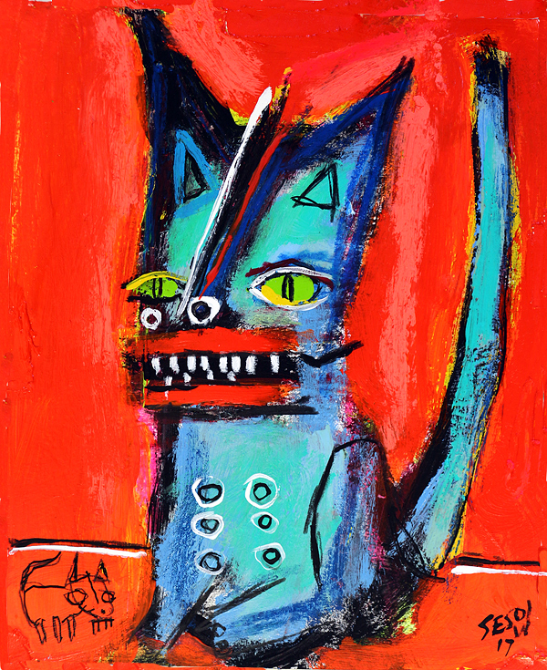 "Green-eyed cat" acrylic on archival paper 8" x 10" solddd email sesow@sesow.com to reserve/ask about purchasing. please include url and description. |