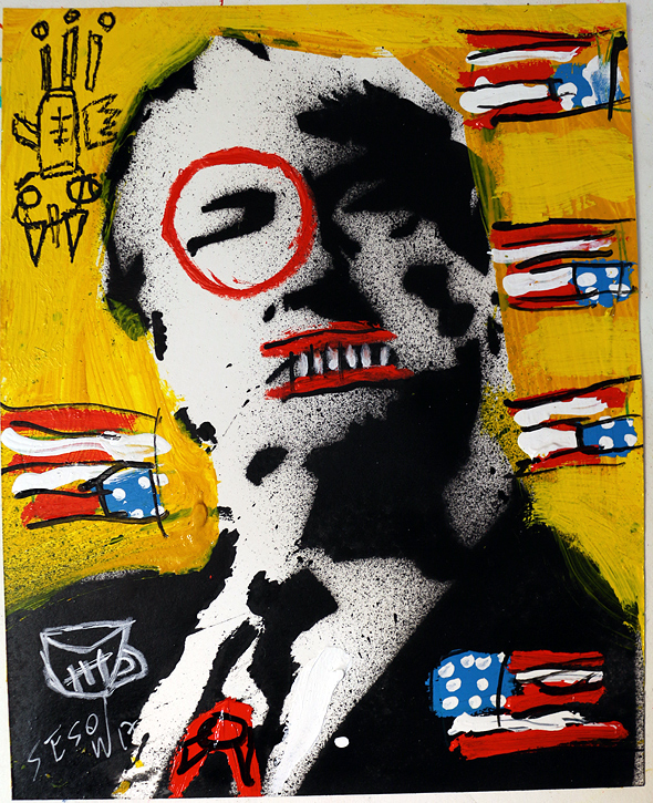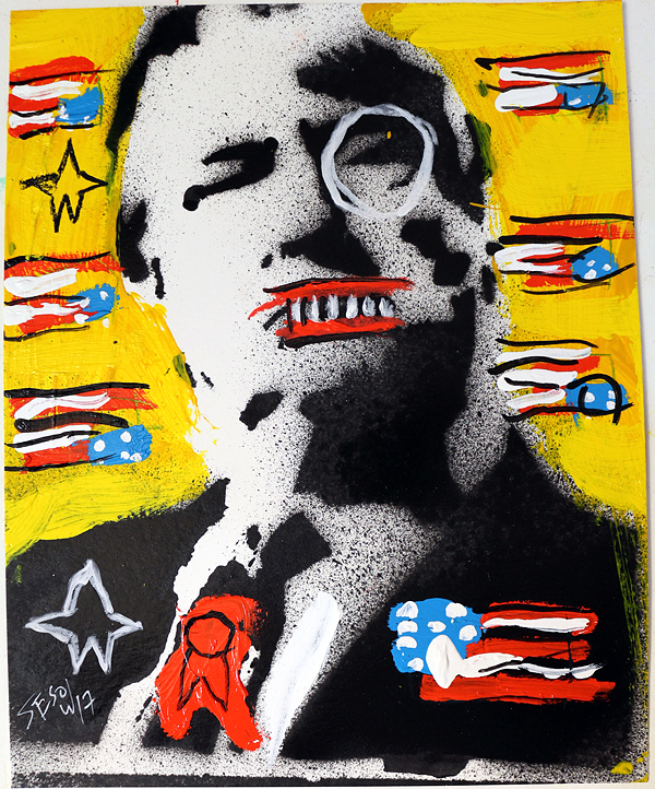 "Shock and Awe" acrylic on archival paper 8" x 10" *SOLD email sesow@sesow.com to reserve/ask about purchasing. please include url and description. |