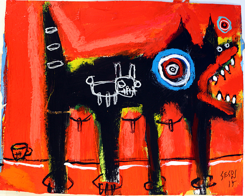"good dog" acrylic on archival paper 8" x 10" *SOLD email sesow@sesow.com to reserve/ask about purchasing. please include url and description. |