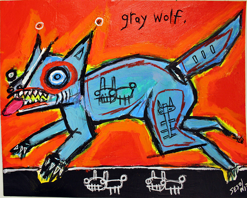 "Gray Wolf" acrylic on archival paper 8" x 10" currently part of a gallery exhibit, contact for more info. email sesow@sesow.com to reserve/ask about purchasing. please include url and description. |