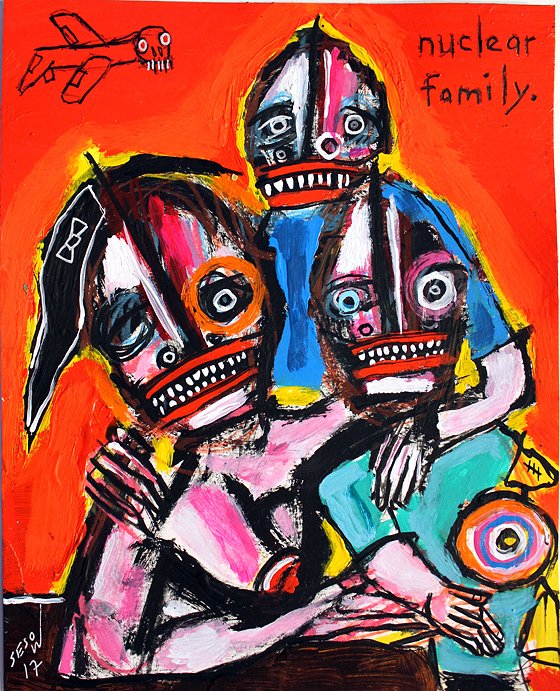 "Nuclear Family" acrylic on archival paper 8" x 10" $100 email sesow@sesow.com to reserve/ask about purchasing. please include url and description. |