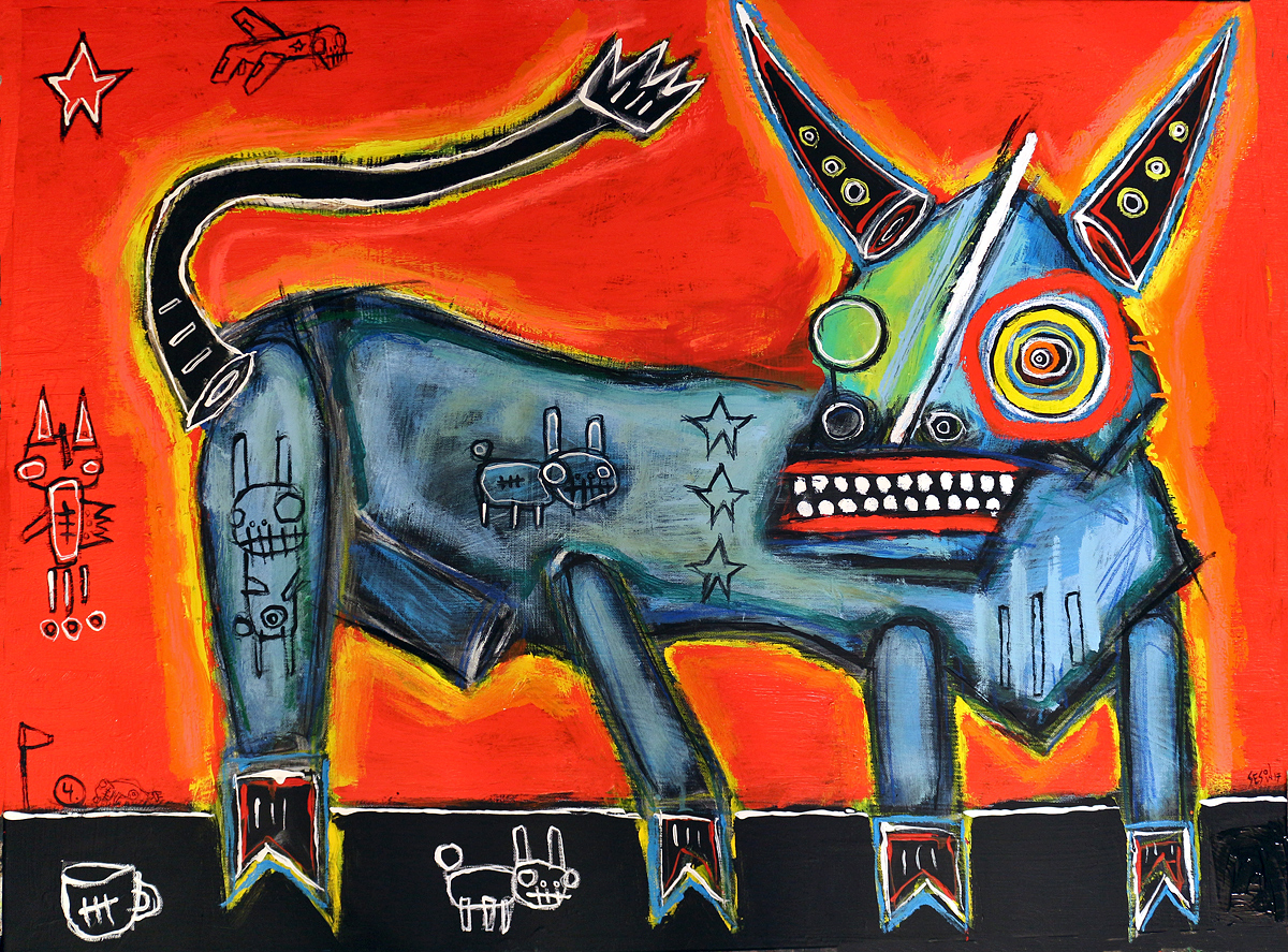 "Bull on the Runway" acrylic/oil on stretched canvas 30" x 40" *SOLD email sesow@sesow.com to reserve/ask about purchasing. please include url and description. |