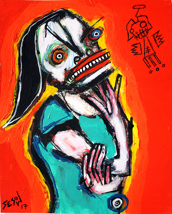 "Varmint" acrylic on archival paper 8" x 10" *SOLD email sesow@sesow.com to reserve/ask about purchasing. please include url and description. |
