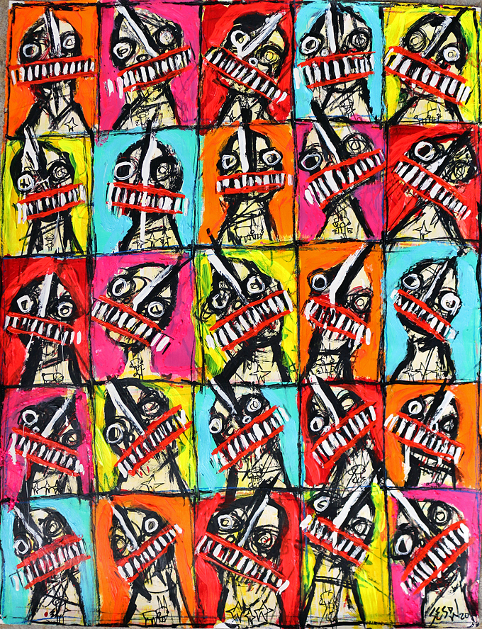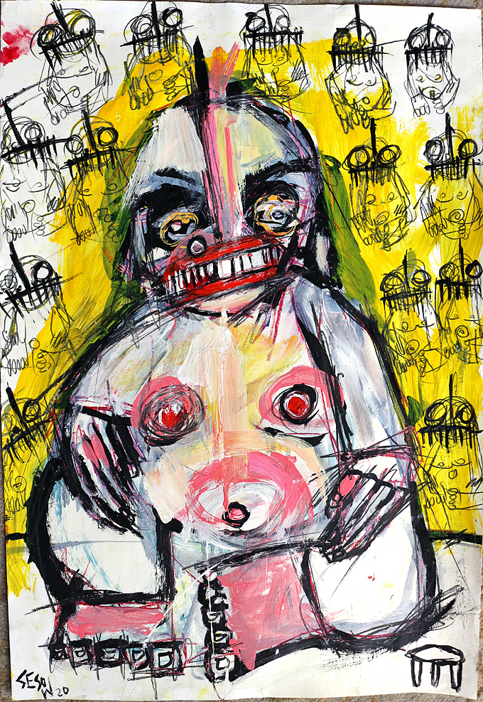 "Self Quarantined" acrylic/mix on archival paper 20" x 26" *SOLD email sesow@sesow.com to reserve/ask about purchasing. please include url and description. |