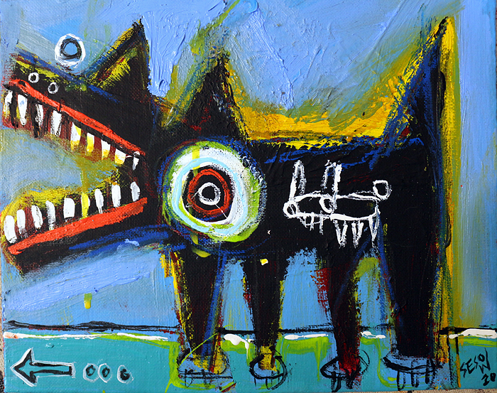 "Little Dog" oil/acrylic on canvas board 8" x 6" *SOLD email sesow@sesow.com to reserve/ask about purchasing. please include url and description. |