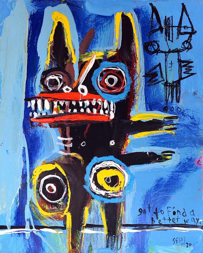 "Got to Find a Better Way" oil/acrylic on archival paper 8" x 10" *SOLD email sesow@sesow.com to reserve/ask about purchasing. please include url and description. |