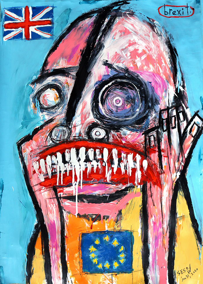 "Brexit" acrylic/mix on paper 28" x 40" *SOLD email sesow@sesow.com to reserve/ask about purchasing. please include url and description. |